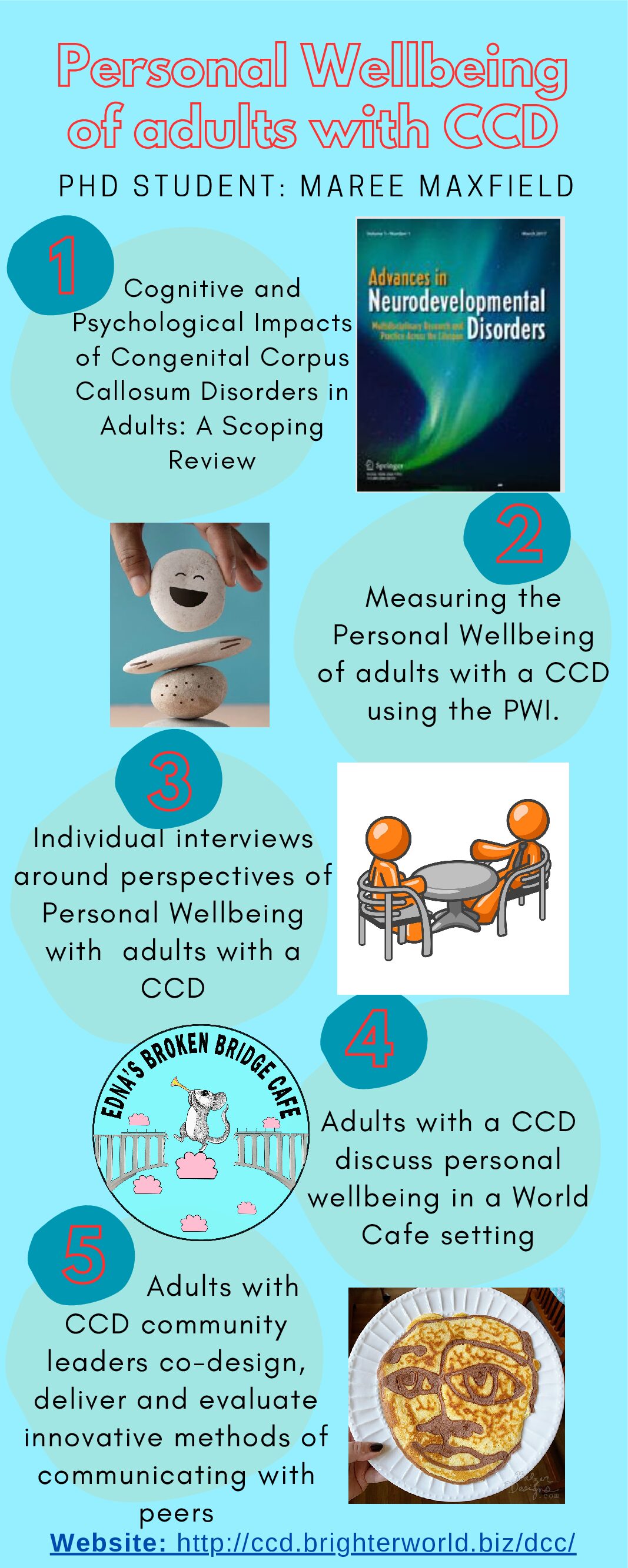 Our participatory research program will explore the subjective quality of life (also known as personal wellbeing or happiness), of adults with corpus callosum disorders (CCDs). It will be codesigned and implemented in close collaboration with members of the CCD community as co-researchers.